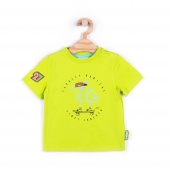 Яркая детская футболка, выполнена из ткани с высоким содержанием хлопка и эластана. Для удобства переодевания предусмотрены застежки на кнопки по плечевому шву. Модель имеет классический круглый вырез с кантом тон в тон и короткие рукава. Внимание! Застежка на плече присутствует только до 98 размера.